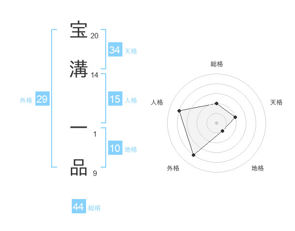 宝溝 一品さんの総格は44画の2点!