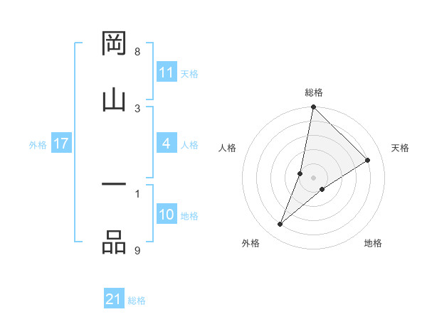 岡山 一品さんの総格は21画の5点