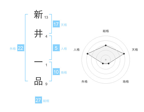 新井 一品さんの総格は27画の3点!