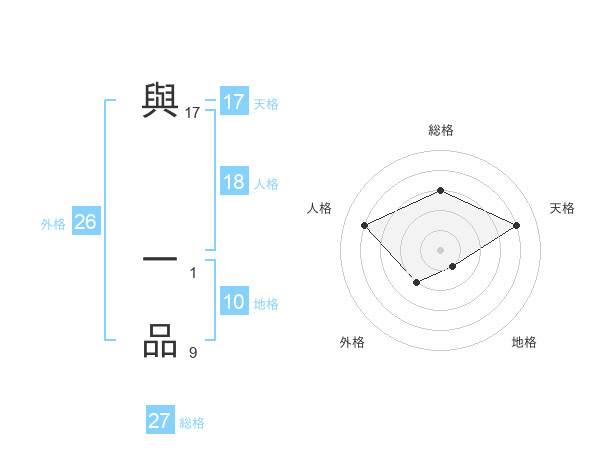 與 一品さんの天格は17画の4点!
