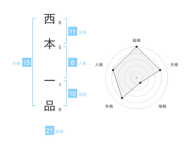 西本 一品さんの総格は21画の5点!