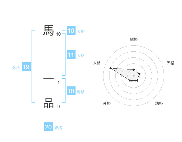 馬 一品さんの総格は20画の1点!