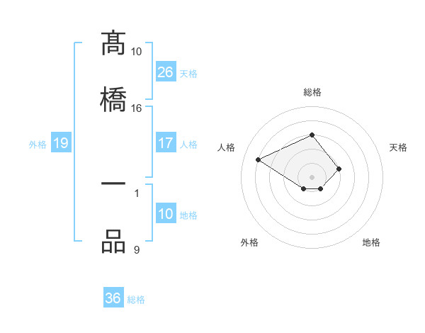髙橋 一品さんの総格は36画の3点!