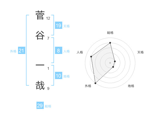 菅谷 一哉さんの総格は29画の4点!