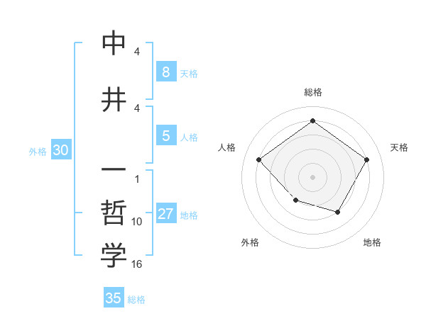 中井 一哲学さんの総格は35画の4点!