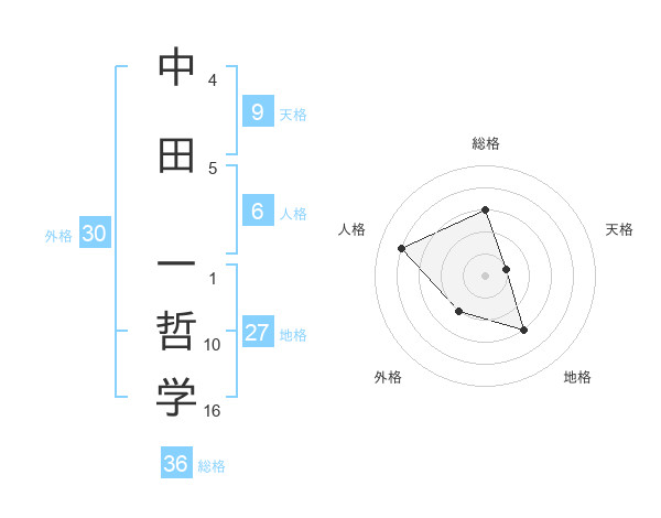 中田 一哲学さんを姓名の画数から五運を鑑定