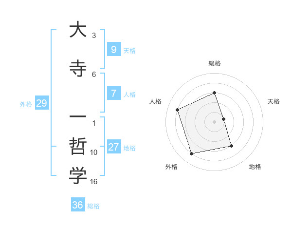 大寺 一哲学さんの地格は27画の3点!
