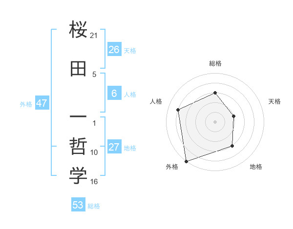 桜田 一哲学さんを姓名の画数から五運を鑑定