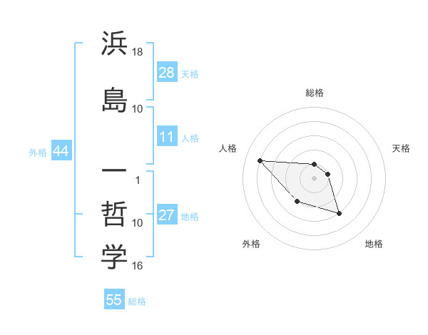浜島 一哲学さんを姓名の画数から五運を鑑定