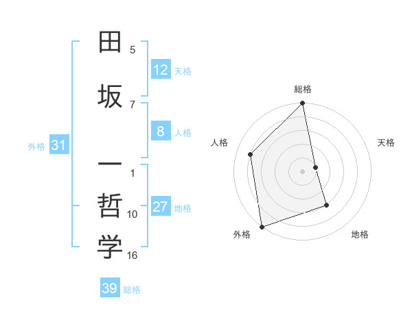 田坂 一哲学さんを姓名の画数から五運を鑑定