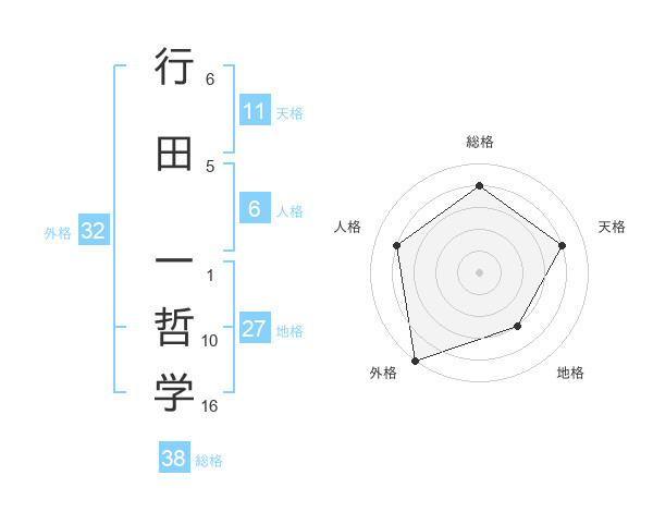 行田 一哲学さんの総格は38画の4点!
