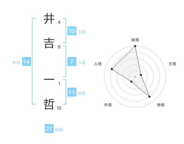 井吉 一哲さんの総格は21画の5点!