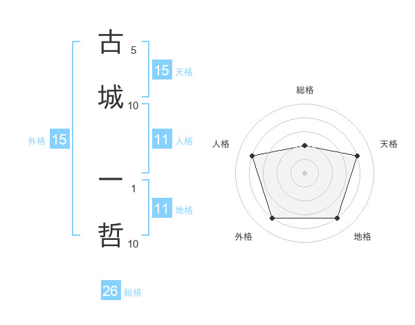 古城 一哲さんを姓名の画数から五運を鑑定