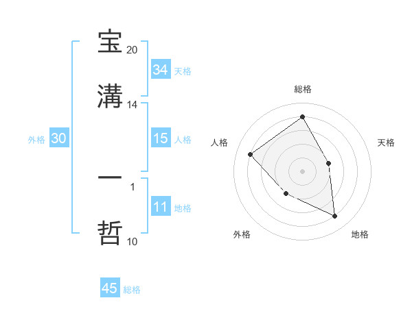 宝溝 一哲さんを姓名の画数から五運を鑑定