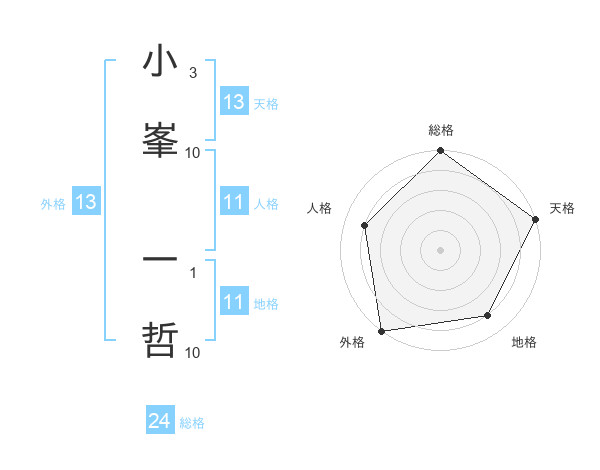 小峯 一哲さんの外格は13画の5点!