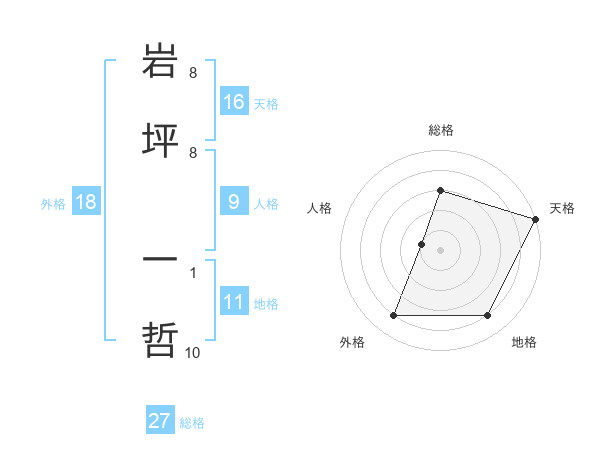 岩坪 一哲さんの総格は27画の3点!