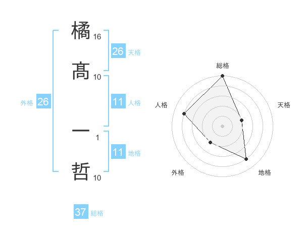 橘髙 一哲さんの総格は37画の5点!