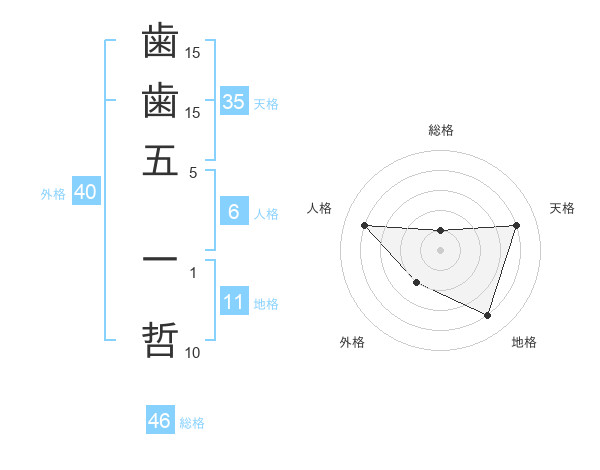 歯歯五 一哲さんを姓名の画数から五運を鑑定