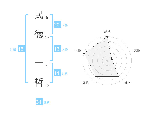 民徳 一哲さんの天格は20画の1点!