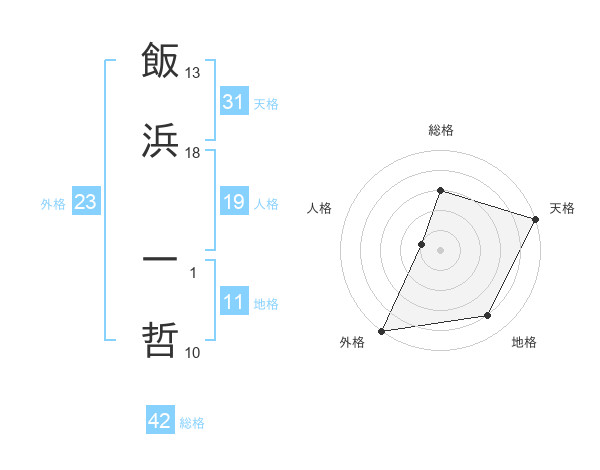 飯浜 一哲さんの総格は42画の3点!