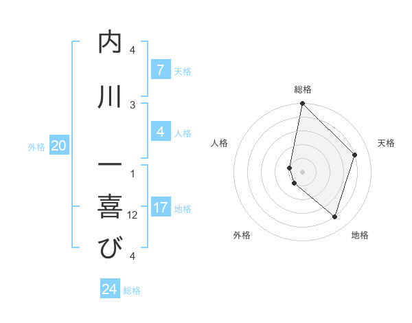 内川 一喜びさんを姓名の画数から五運を鑑定