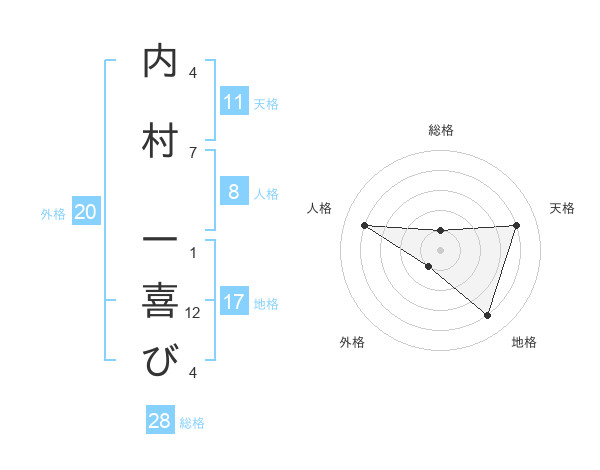 内村 一喜びさんを姓名の画数から五運を鑑定