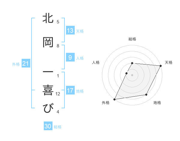 北岡 一喜びさんを姓名の画数から五運を鑑定