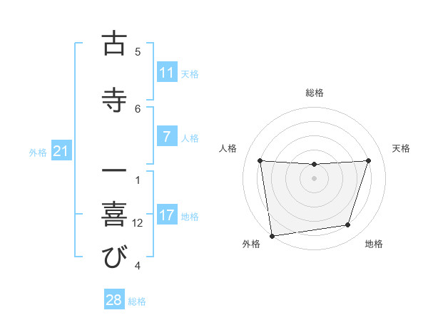 古寺 一喜びさんを姓名の画数から五運を鑑定