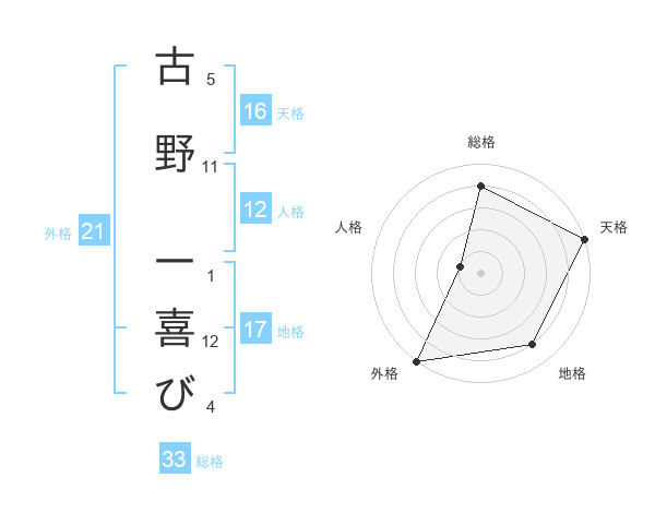 古野 一喜びさんを姓名の画数から五運を鑑定