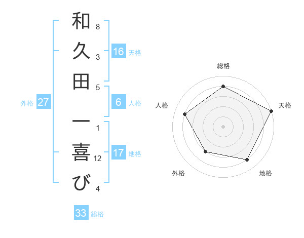 和久田 一喜びさんを姓名の画数から五運を鑑定