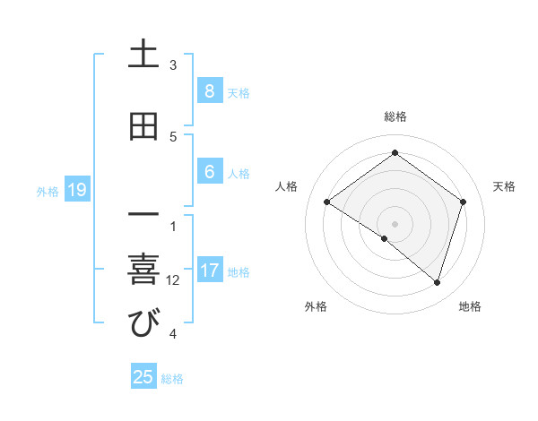 土田 一喜びさんの天格は8画の4点