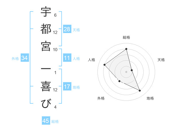 宇都宮 一喜びさんの名前の鑑定結果は!