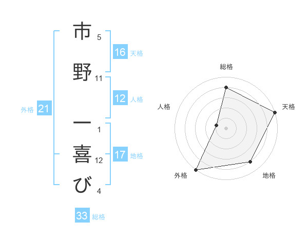市野 一喜びさんの外格は21画の5点!