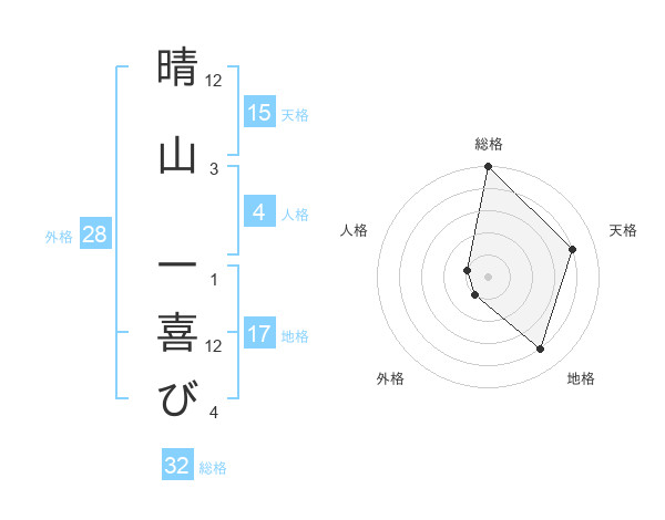 晴山 一喜びさんを姓名の画数から五運を鑑定