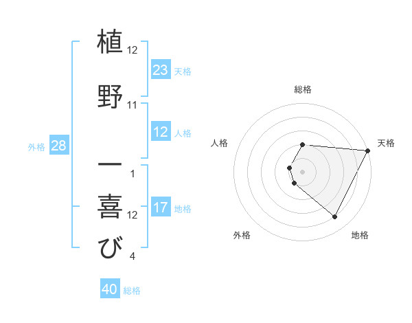 植野 一喜びさんを姓名の画数から五運を鑑定