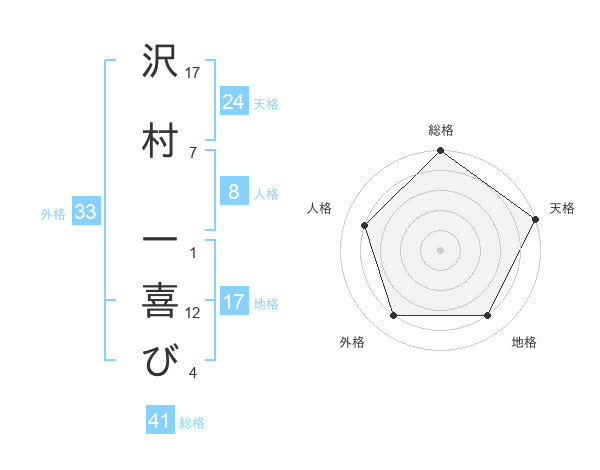 沢村 一喜びさんを姓名の画数から五運を鑑定