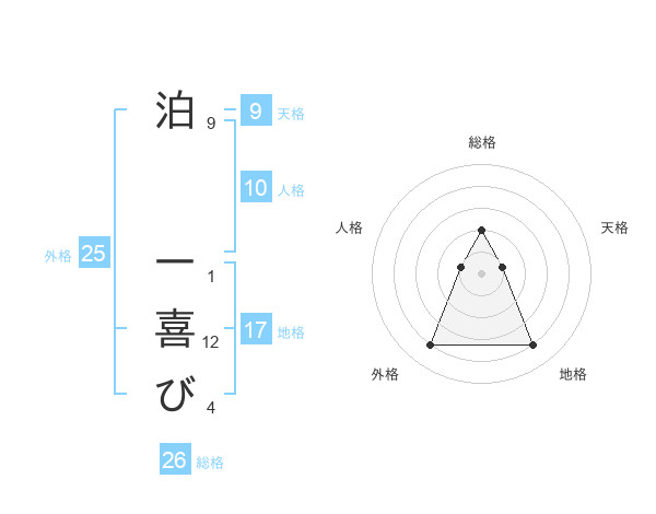 泊 一喜びさんを姓名の画数から五運を鑑定