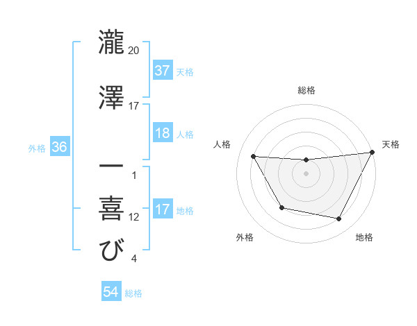 瀧澤 一喜びさんを姓名の画数から五運を鑑定