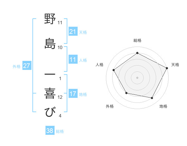 野島 一喜びさんを姓名の画数から五運を鑑定