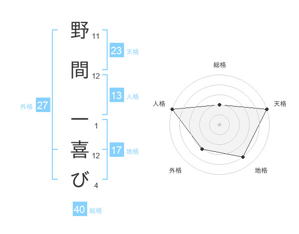 野間 一喜びさんを姓名の画数から五運を鑑定