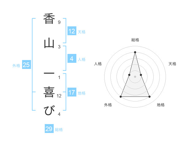 香山 一喜びさんの総格は29画の4点!