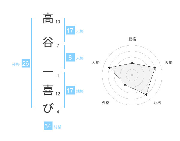 高谷 一喜びさんを姓名の画数から五運を鑑定