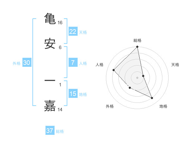 亀安 一嘉さんを姓名の画数から五運を鑑定