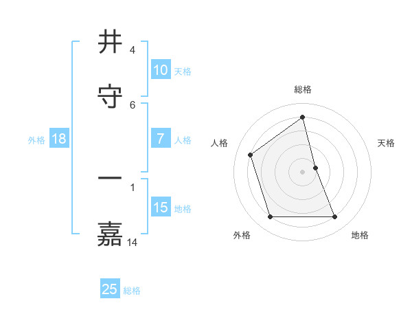 井守 一嘉さんを姓名の画数から五運を鑑定