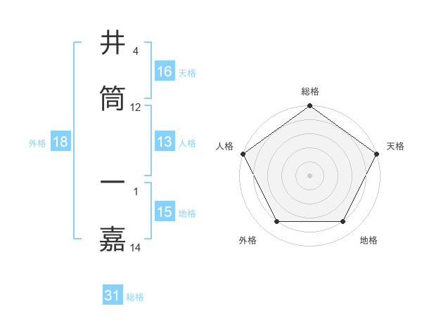 井筒 一嘉さんを姓名の画数から五運を鑑定