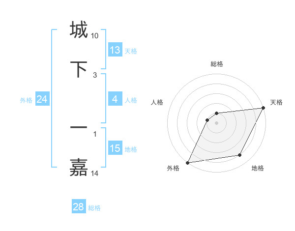 城下 一嘉さんを姓名の画数から五運を鑑定