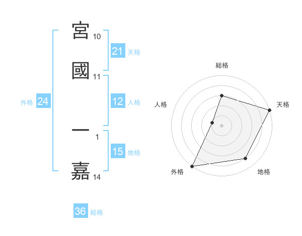 宮國 一嘉さんを姓名の画数から五運を鑑定