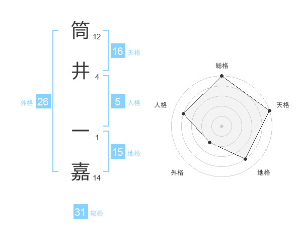 筒井 一嘉さんを姓名の画数から五運を鑑定