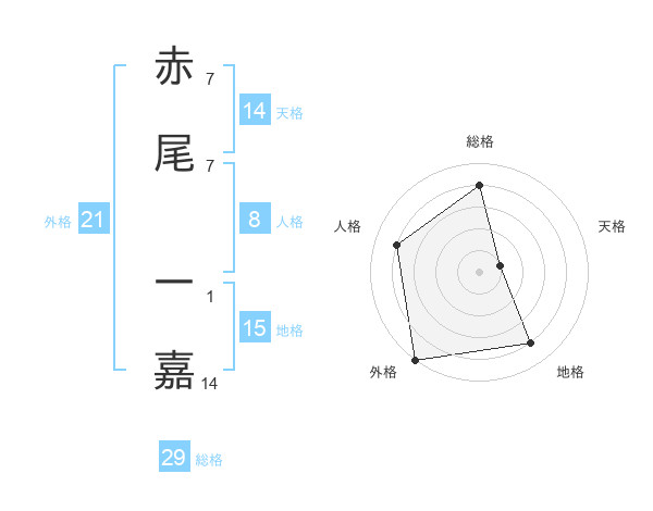 赤尾 一嘉さんを姓名の画数から五運を鑑定