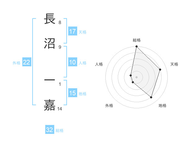 長沼 一嘉さんを姓名の画数から五運を鑑定